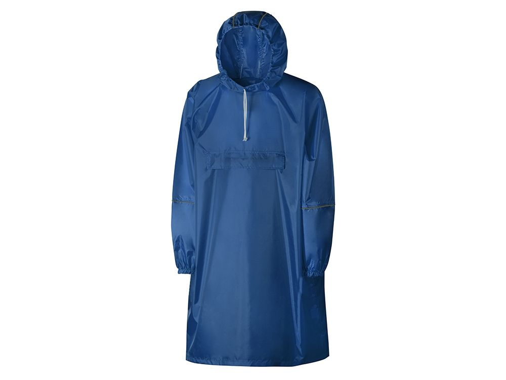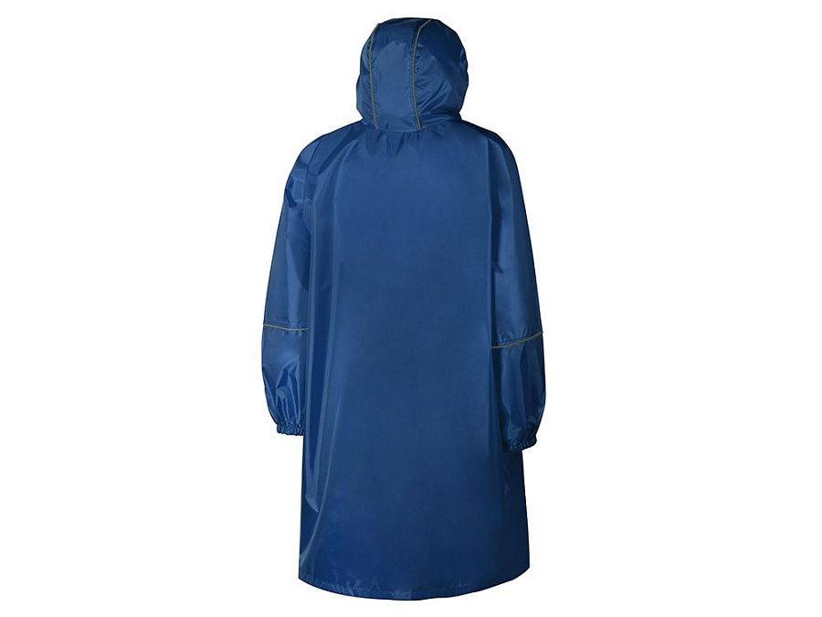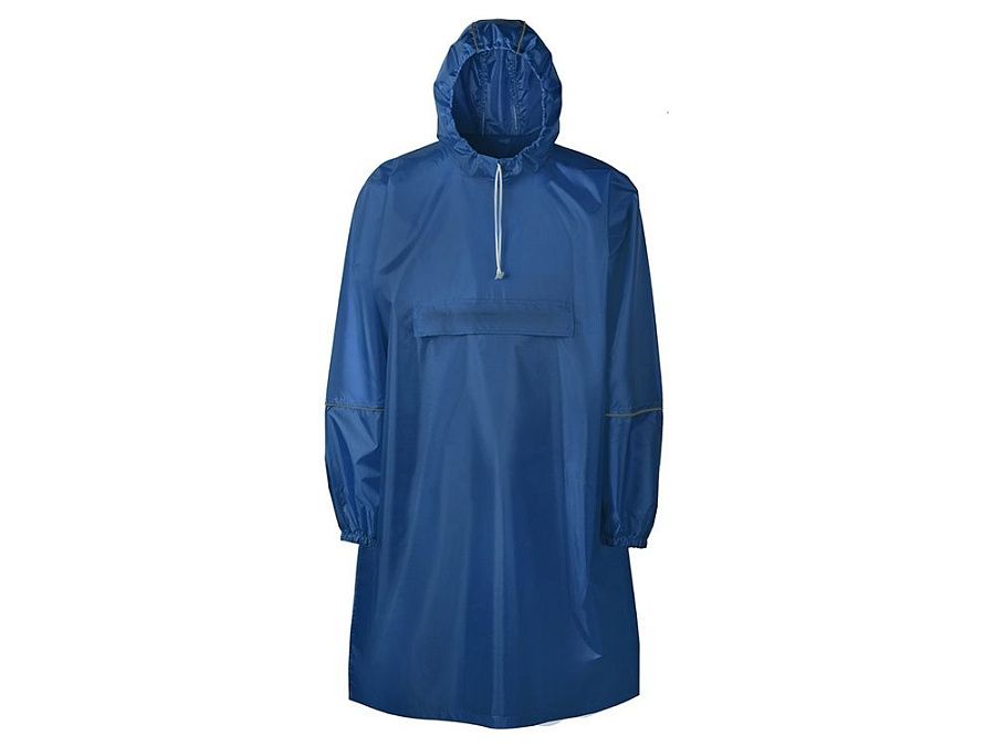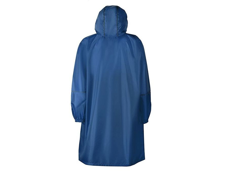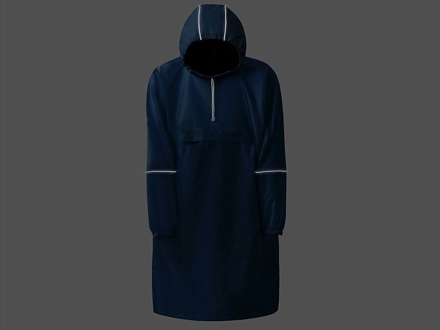 Дождевик - пончо прямого силуэта. Нагрудный карман плаща закрывается на молнию, которая дополнительно защищена клапаном, а еще в него можно полностью убрать дождевик. На дне кармана — ручка-петелька, которая в сложенном виде может использоваться для подвешивания.