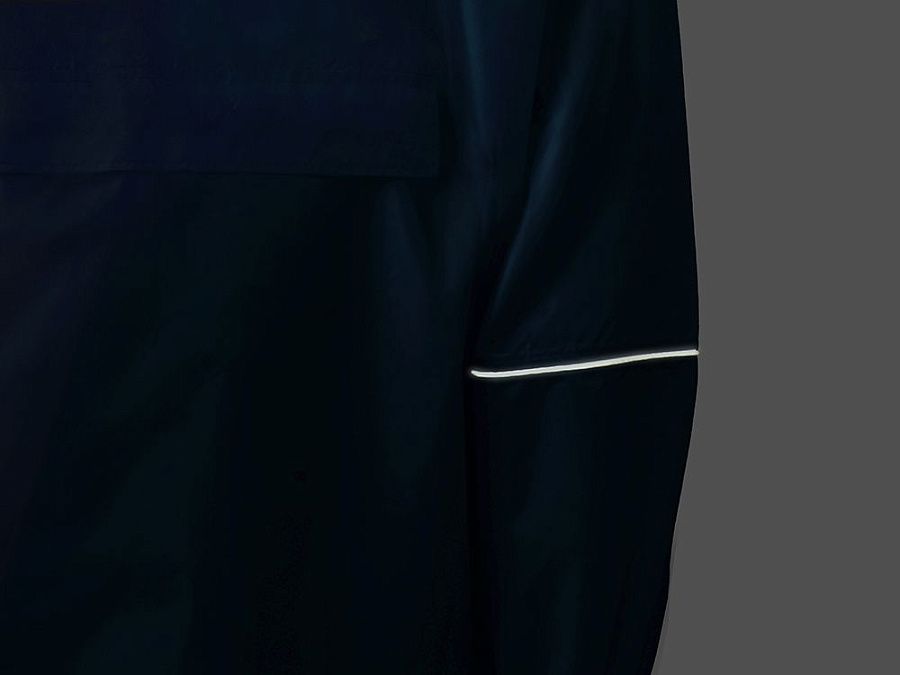 Швы капюшона и рукавов отделаны светоотражающим кантом, который делает человека заметным даже в темное время суток. Для комфортной посадки — затягивающийся на шнурок капюшон с фиксатором и манжеты на резинке.