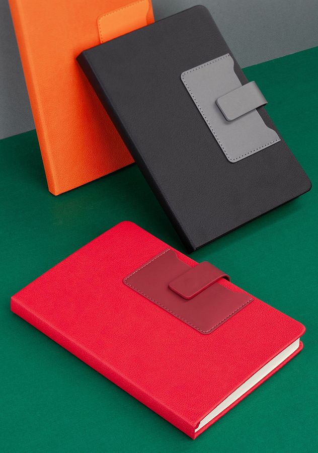 На лицевой стороне ежедневника предусмотрен карман для карт, записок, визиток. Чтобы заметки и записи были под контролем, а пользователь в любой момент мог внести новую информацию - у "Монти" предусмотрена петелька для ручки. Кроме того, ежедневник закрывается на магнитный хлястик.