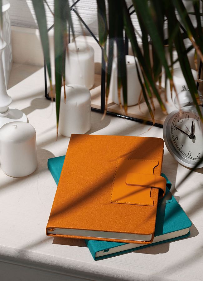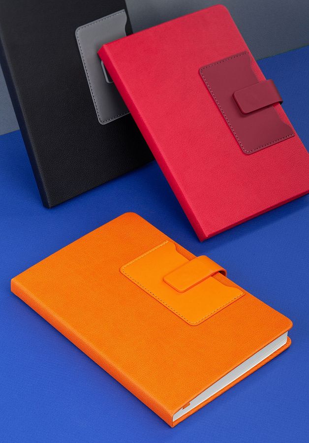 На лицевой стороне ежедневника предусмотрен карман для карт, записок, визиток. Чтобы заметки и записи были под контролем, а пользователь в любой момент мог внести новую информацию - у "Монти" предусмотрена петелька для ручки. Кроме того, ежедневник закрывается на магнитный хлястик.