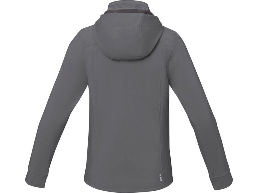 Женская куртка софтшел Langley. Стандартный покрой. Отстегивающийся капюшон на шнурках со стопперами. Обратная молния по центру и на карманах для рук. Регулируемые манжеты на липучках. Отражающий лого сзади. Водонепроницаемый 5000 мм. Дышащий 3000 мм. Ткань эластична в четырех направлениях. Ветронепроницаемая. Ремешки на собачку (второй комплект в цвете антрацит). Ткань из 90% полиэстера и 10% эластана, склеенного со 100% полиэстеровым микрофлисом. 300 г/м².