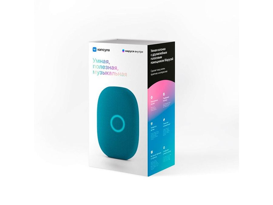 VK Капсула — умная колонка с мощным звуком. Наслаждайтесь музыкой — Маруся подберёт вам трек по вкусу. А ещё помурчит, если погладить колонку.