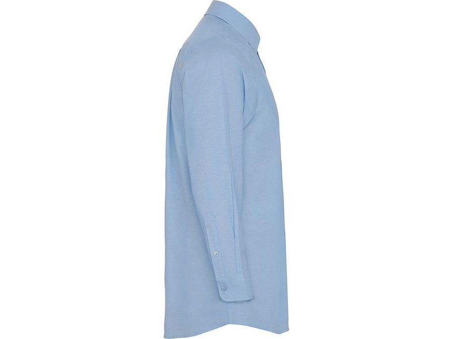 Мужская рубашка с длинным рукавом, накладной карман слева. Планка на пуговицах. Отложной воротник на стойке. Манжета регулируется по ширине с помощью 2-х пуговиц. Кокетка на спинке.
