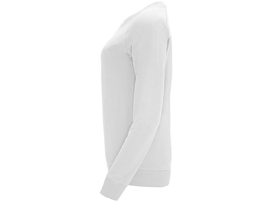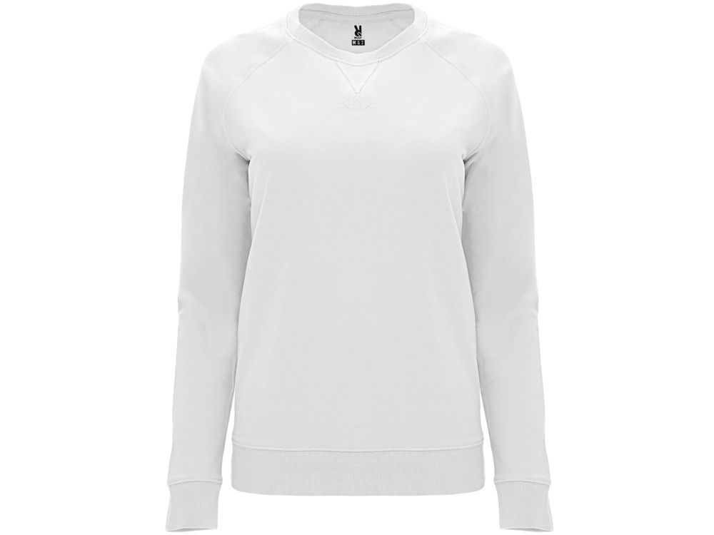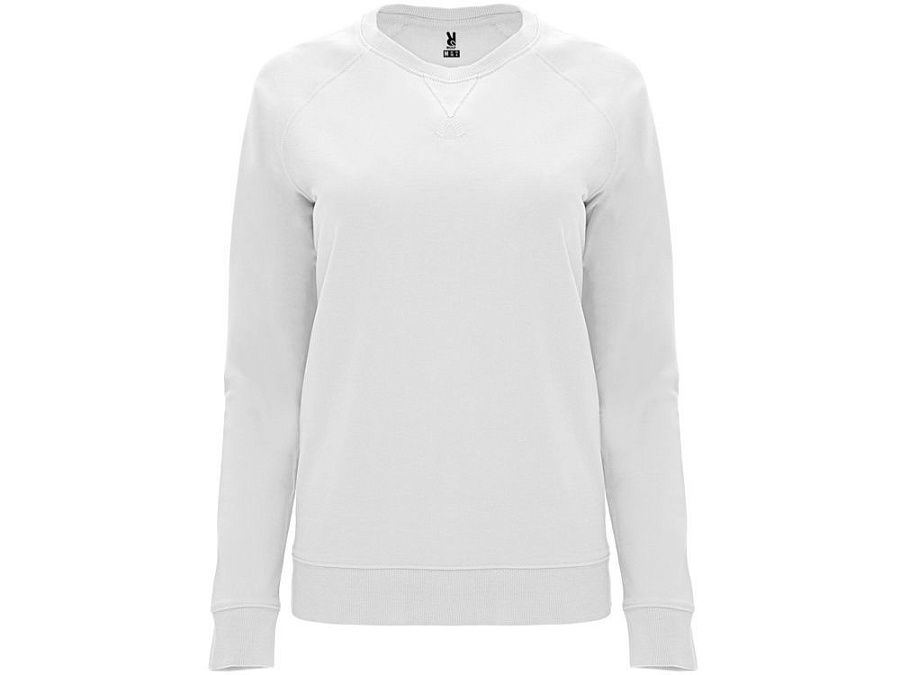 Свитшот с рукавом реглан из хлопкового футера без начеса. Манжеты по рукавами низу изделия из риба 2х1. Впереди треугольная деталь с декоративной отстрочкой .Круглый вырез горловины дополнительно усилен тесьмой.