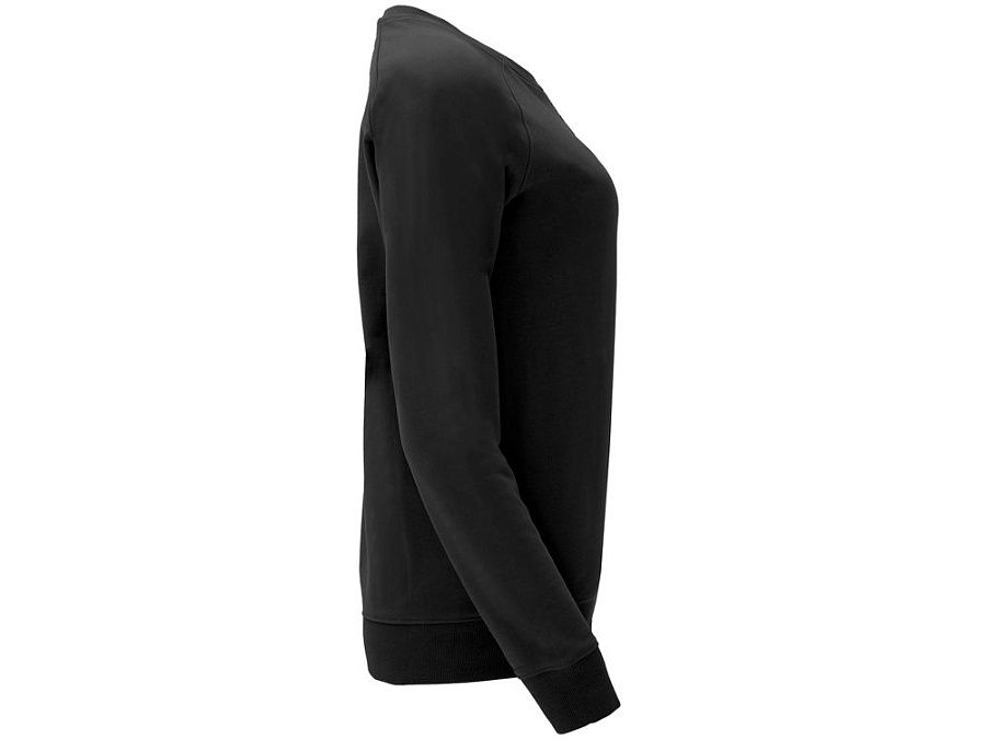 Свитшот с рукавом реглан из хлопкового футера без начеса. Манжеты по рукавами низу изделия из риба 2х1. Впереди треугольная деталь с декоративной отстрочкой .Круглый вырез горловины дополнительно усилен тесьмой.