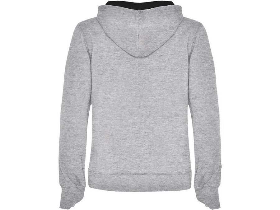 Худи с капюшоном и шнурками. Отделка горловины спинки внутри тесьмой, Риб 1х1 по низу изделия и манжетам. Карман кенгуру. На манжетах вырез под большой палец