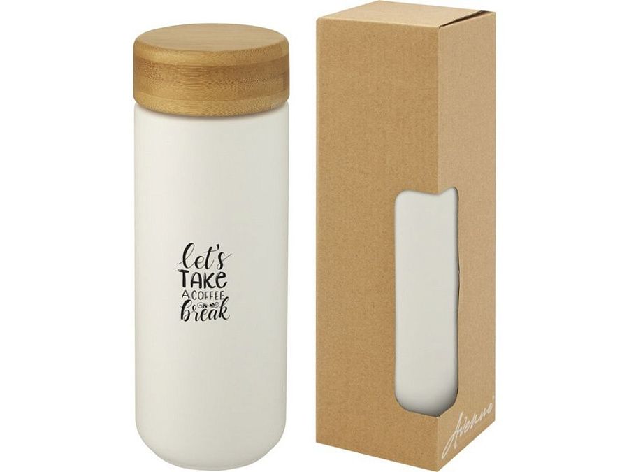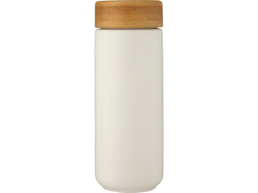 Керамическая кружка со стильной бамбуковой крышкой. Керамическая конструкция с двойными стенками помогает предотвратить образование конденсата на внешней стороне кружки. Навинчивающаяся крышка с защитой от проливания изготовлена из экологичного бамбука, отвечающего принципам экологической и социальной ответственности. Не содержит БФА, испытано и одобрено в соответствии с немецким законодательством о безопасности пищевых продуктов (LFGB). Проверена на содержание фталатов и одобрена для использования в соответствии с правилами REACH. Объем 300 мл. Рекомендуется мыть вручную. В подарочной коробке из переработанного картона.