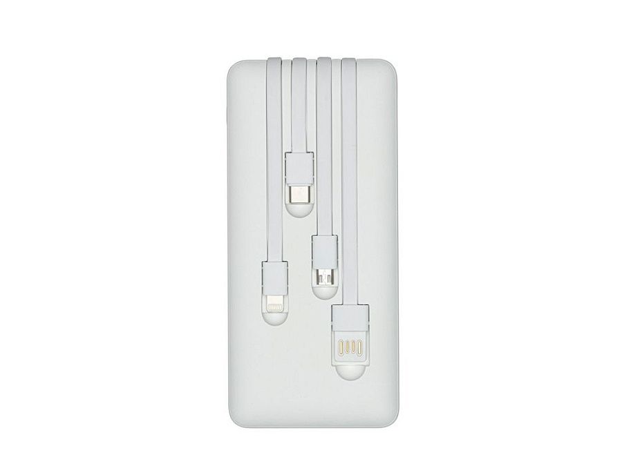 Литий-полимерный внешний аккумулятор емкостью 10000 мАч. Цифровой дисплей показывает уровень заряда. Защита от перегрузок, короткого замыкания, чрезмерного заряда и разряда. Автоматическое включение/выключение. Достаточно подключить кабель к разъему мобильного устройства и начнется заряд. Сквозной заряд - можно одновременно заряжать телефон и сам аккумулятор. Количество зарядов смартфона до 3 раз. (Зависит от емкости аккумулятора смартфона). ОСНОВНЫЕ ПРЕИМУЩЕСТВА: 4 встроенных кабеля - не надо искать подходящий кабель для Вашего телефона! Цифровой дисплей. Сквозной заряд.