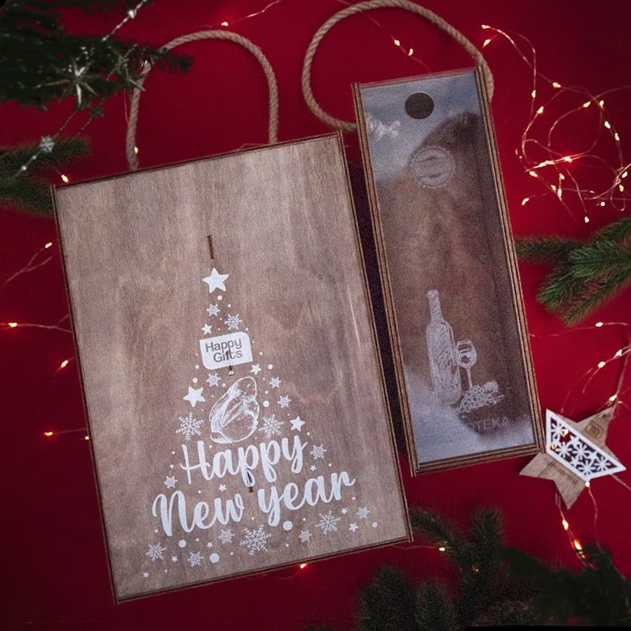 HAPPY GIFTS представляет вашему вниманию ящик подарочный WINOTERRA - пенал двойной с джутовой ручкой изготовлен из дерева толщиной 4 мм, покрыт морилкой цвета дуб. Передняя крышка - акрил. Цена на сайте указана при заказе из складского остатка. Сроки поставки и цену конкретного тиража "под заказ" уточняйте у вашего менеджера.