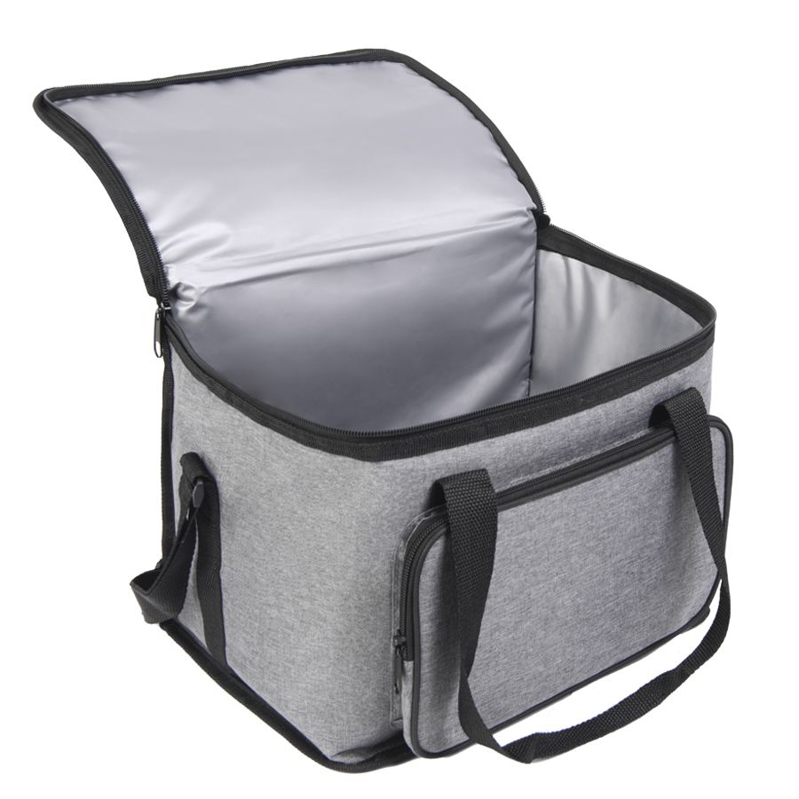 Сумка-холодильник с прочными двойными ручками,лямкой на плечо и внешним карманом на молнии из прочного меланжевого полиэстра 600D Внутреннее отделение из PEVA.Объём:15 литров.