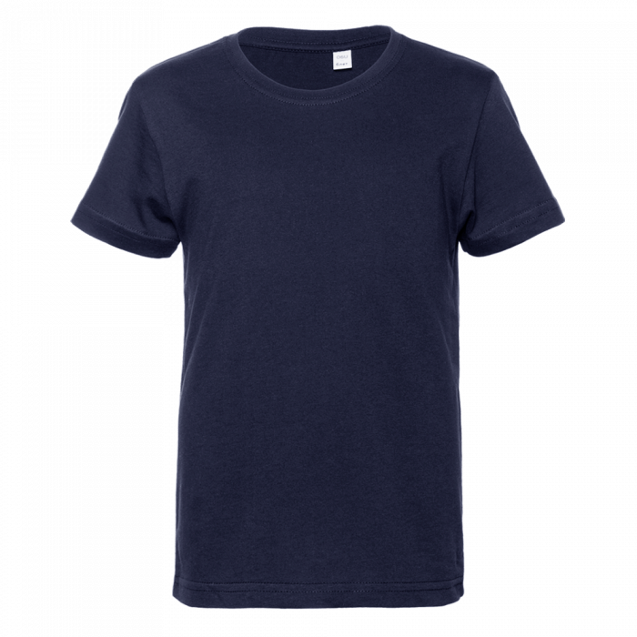 Детская футболка свободного силуэта с округлым воротом и втачным рукавом. Плечевые швы и шов горловины спинки усилены настрочной бейкой из основного полотна.