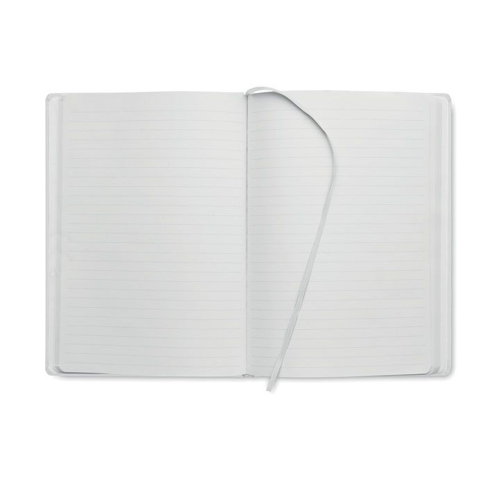 Блокнот формата A5 в твердой обложке из полиуретана. В переплете. 200 линованные страницы (100 листов) из переработанной бумаги (80 гсм). Закладка для страниц. Сделано в ЕС.