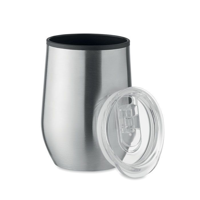 Термокружка с двойными стенками из нержавеющей стали. Пластик внутри. Прозрачная пластиковая крышка. Емкость: 350 мл.