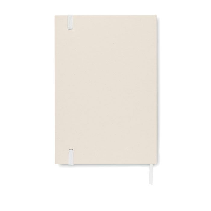 Блокнот A5 на резинке в твердой обложке, изготовленный на 70% из переработанного картона и на 30% из переработанной бумаги. В переплете. 160 линованных страниц (80 листов 80 gsm) из переработанной бумаги. Ленточка-закладка.