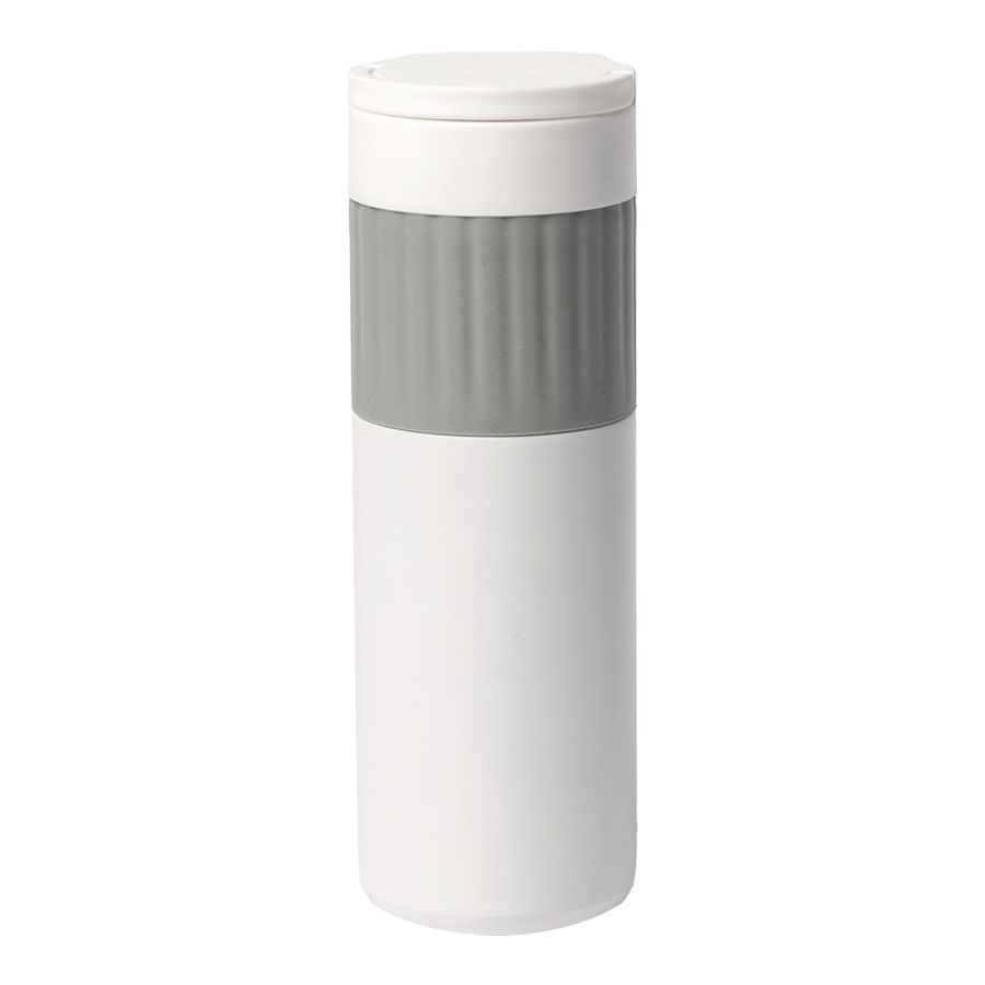 Термос TURBO с двойными стальными стенкамиСтильный белый матовый корпус термоса с цветной силиконовой манжетойДержатель на крышке для удобства переноскиГерметичная навинчивающаяся крышка не даст напитку пролитьсяСохраняет температуру жидкости до 8 часов в зависимости от температуры окружающей среды.Цвет близкий к Pantone cool grey 8CИндивидуальная упаковка из крафтового картона