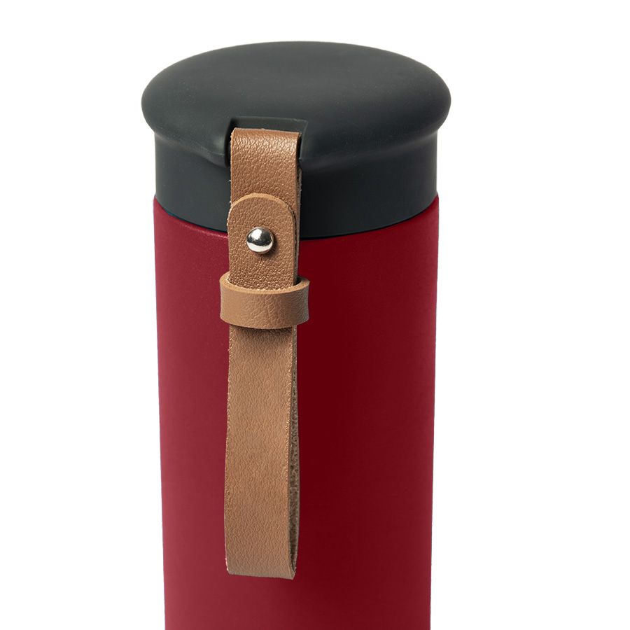 Вакуумный термос STRIPE с двойными стальными стенкамиСтильный матовый корпус термоса из нержавеющей стали (марка 304)Удобный ремешок из искусственной кожи, подходит для персонализацииГерметичная крышка с покрытием soft-touch не даст напитку пролитьсяСохраняет температуру жидкости до 12 часов в зависимости от температуры окружающей среды.Цвет близкий к Pantone 200 CИндивидуальная упаковка из крафтового картона