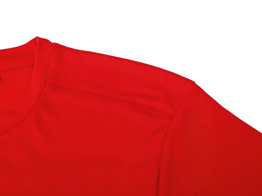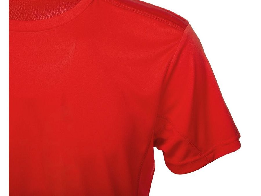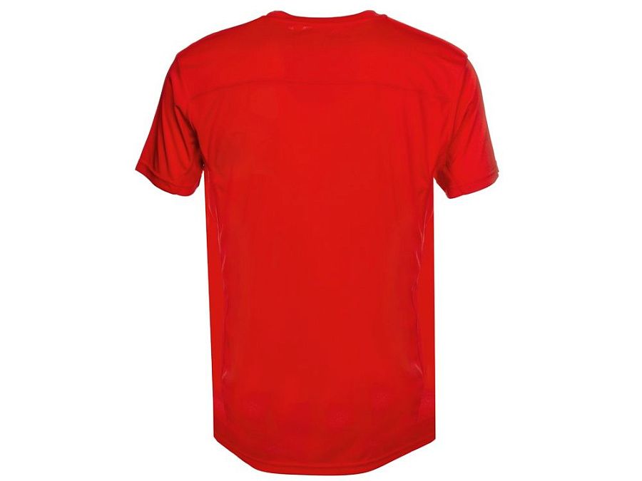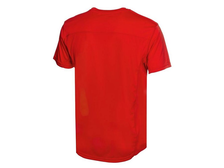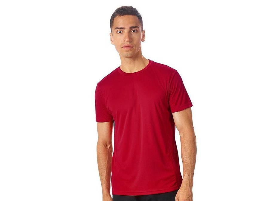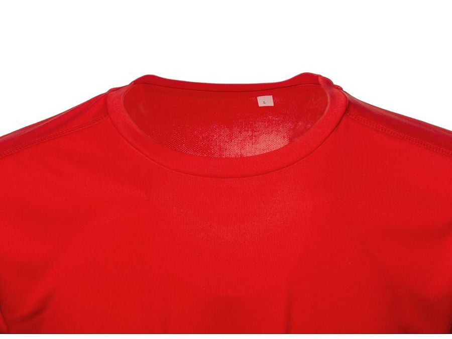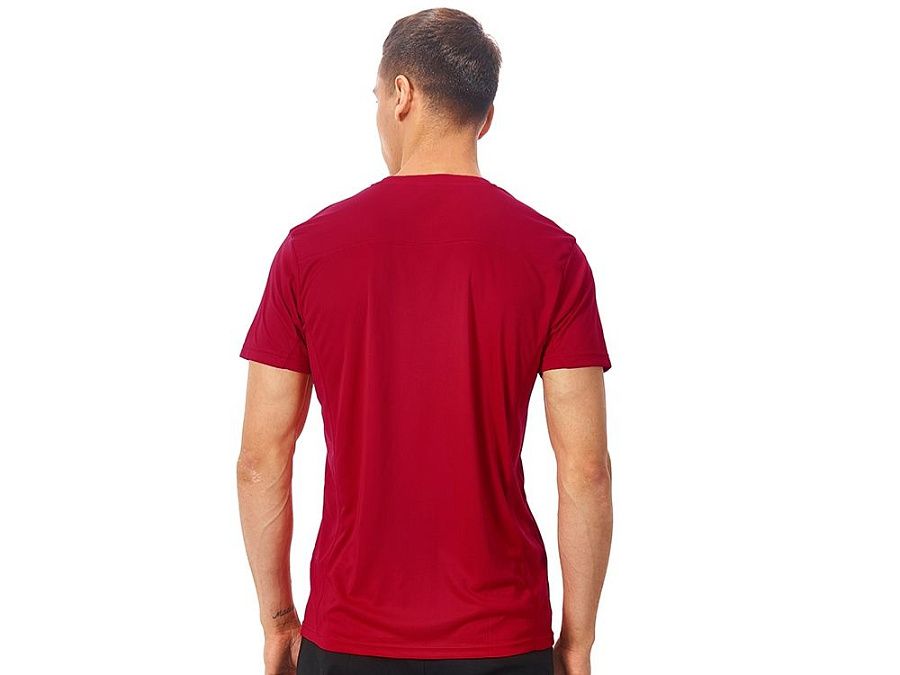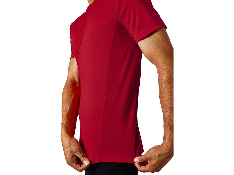 Мужская спортивная футболка выполнена из двух разных видов полотна: спинка и перед из интерлока имеют гладкую поверхность, а декоративные вставки выполнены из спортивной сетки ячеистой структуры. Благодаря наличию таких вставок воздух свободно проникает под футболку, охлаждая кожу во время спортивных нагрузок.