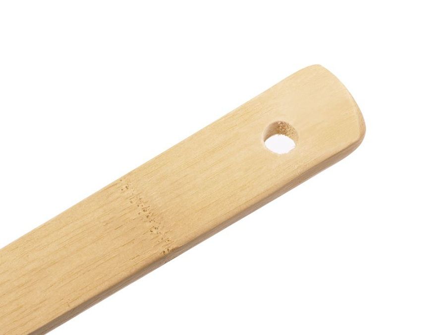 Бамбуковая ложка не царапает стенки посуды, в которой готовится пища, не искажает вкус пищи и легко отмывается мылом или средствами для мытья посуды под струей воды. Незаменимое приспособление для готовки, которое обязательно должно быть на каждой кухне