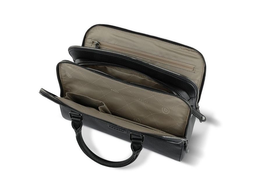Функциональная организация: 3 отделения на молнии с карманом на молнии и 2 открытыми карманами, 2 ручки, съемный регулируемый плечевой ремень (до 130 см).