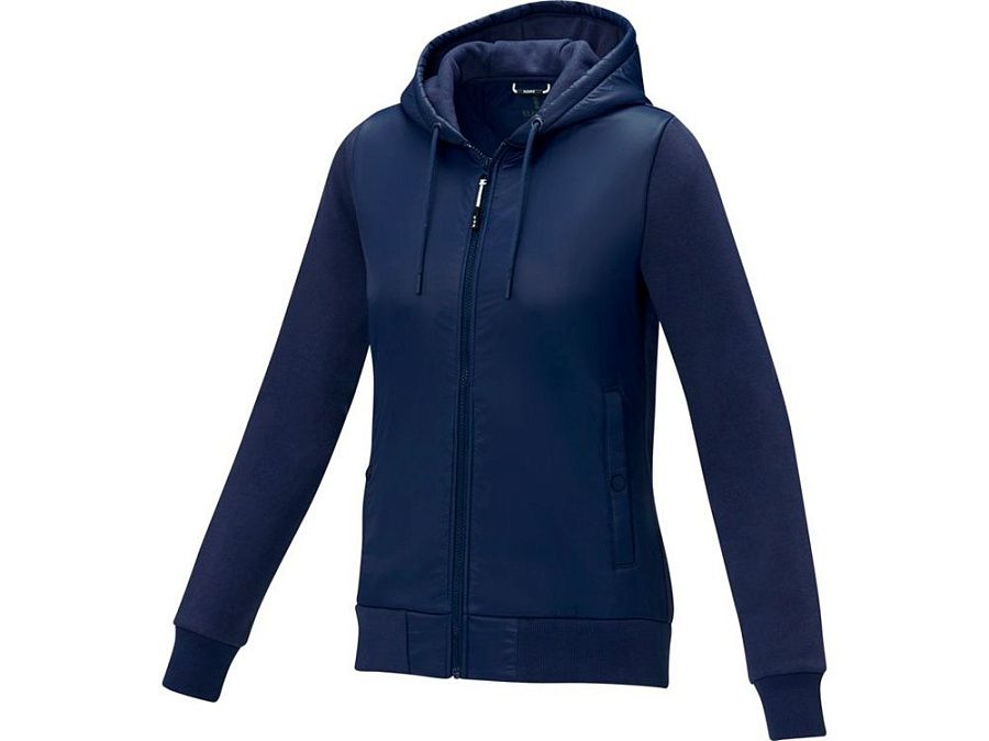 Открытая пластиковая застежка-молния по центру спереди. Карманы спереди. Внутренний карман. Эластичные манжеты и нижний край из гладкого трикотажа. Петля для подвешивания с фирменной символикой. Капюшон на кулиске. Внутренняя сторона покрыта ворсом. Фигурные швы и зауженная талия для идеальной посадки. Удобный бегунок застежки-молнии. Главный лейбл нанесен методом термоприклеивания, удобным для размещения рисунков на ткани.