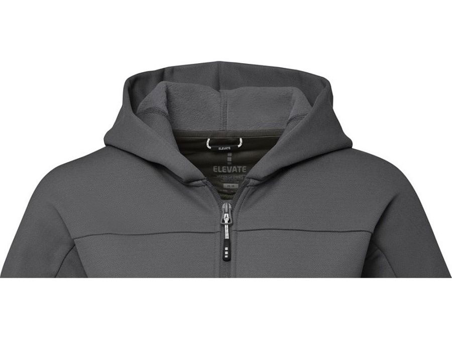 По центру спереди расположена обратная застежка-молния. Карманы спереди. Внутренняя сторона покрыта ворсом. Петля для подвешивания с фирменной символикой. Горловина из атласа. Внутреннее выходное отверстие для медиа с направляющей для шнура. Полумесяц. Главный лейбл нанесен методом термоприклеивания, удобным для размещения рисунков на ткани.