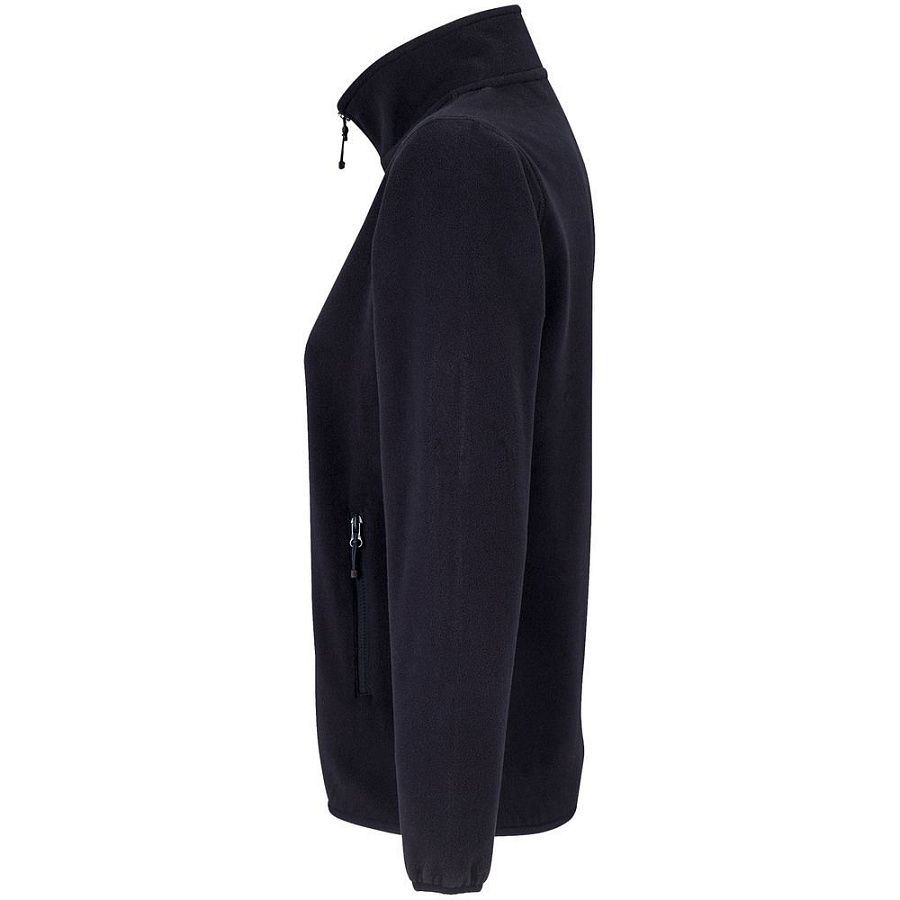 Флисовая женская куртка с воротником-стойкой. Застежка-молния в тон ткани, боковые карманы на молнии. Укрепляющая тесьма по вороту. Края рукава и низ изделия отделаны эластичной резинкой.
