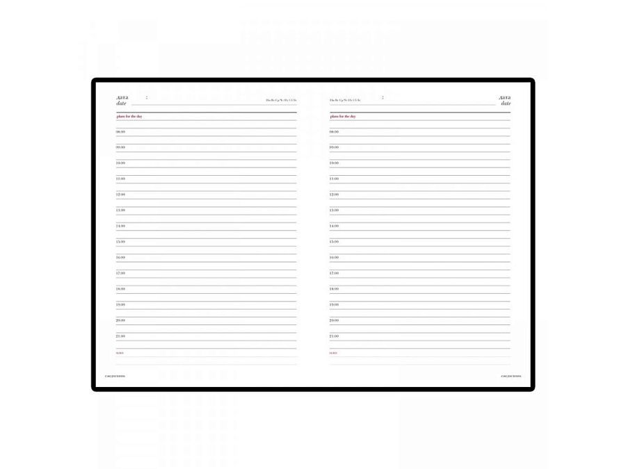 В ежедневнике «Sidney Nebraska» есть полезная справочная информация и телефонная книга на 18 листов, а также 272 страницы для записи идей, мыслей и составления рабочих планов. Специально для ежедневных офисных дел в ежедневнике используется качественная белая бумага плотностью 70 г/м². Разметка блока с указанием времени позволяет планировать дела с точностью до 1 часа.