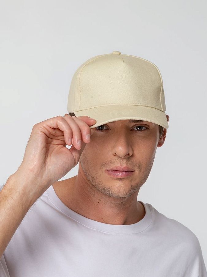 Минималистичная бейсболка с закругленным козырьком и большим местом для нанесения логотипа.