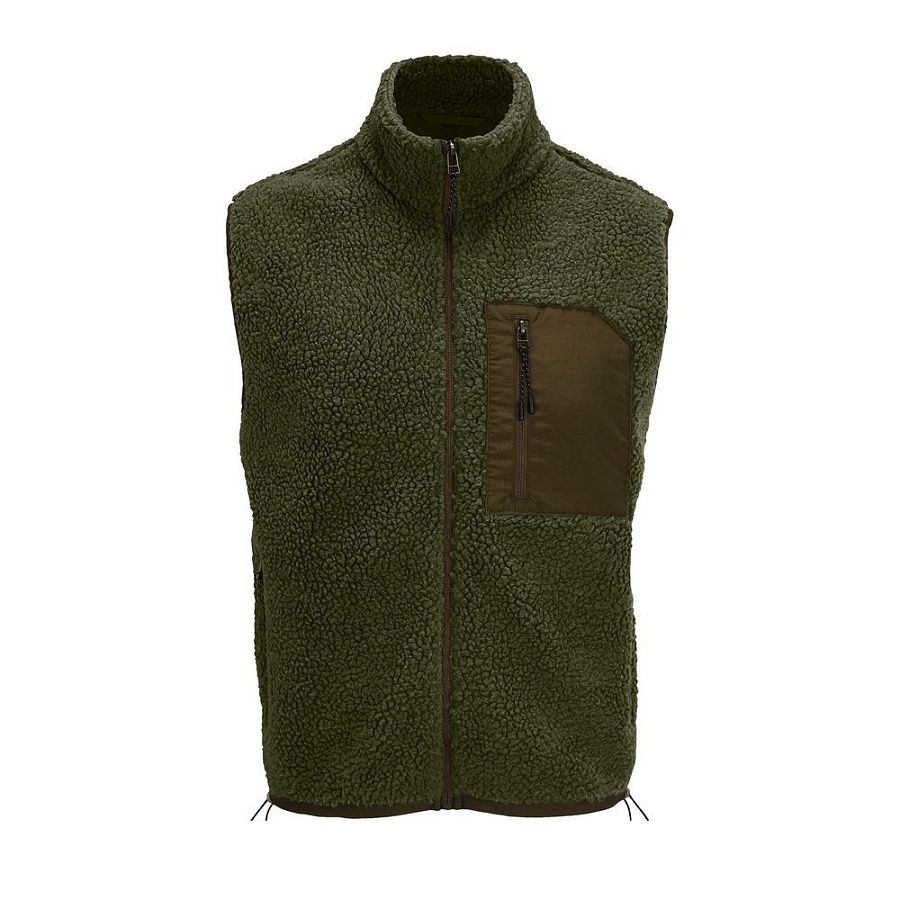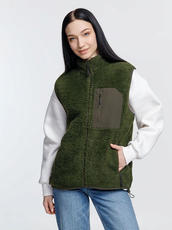 Жилет унисекс из фактурной искусственной шерпы с гладкой отделкой из таслана.