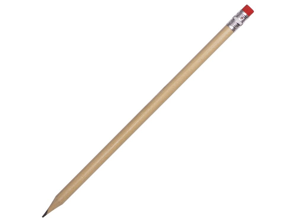 Стильный круглый чернографитовый карандаш натурального цвета с цветным ластиком станет отличным подарком и аксессуаром.