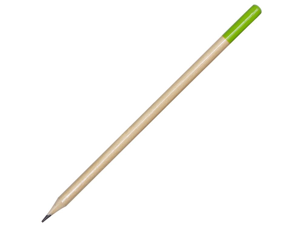 Стильный круглый чернографитовый карандаш натурального цвета с цветным наконечником станет отличным подарком и аксессуаром.