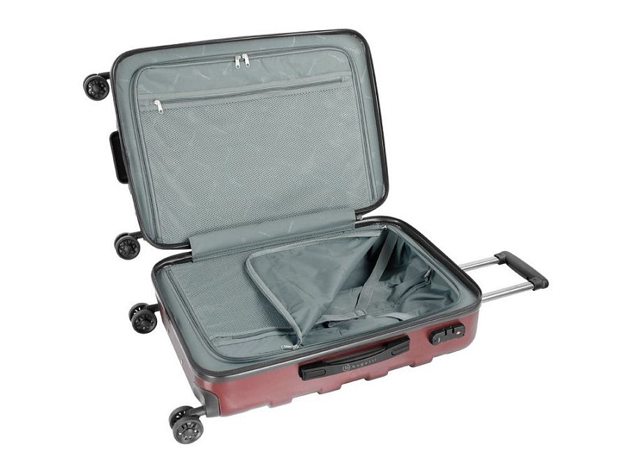 Внешняя организация: телескопическая ручка, кодовый замок TSA, 4 двойных колеса, боковая ручка, ручка на дне