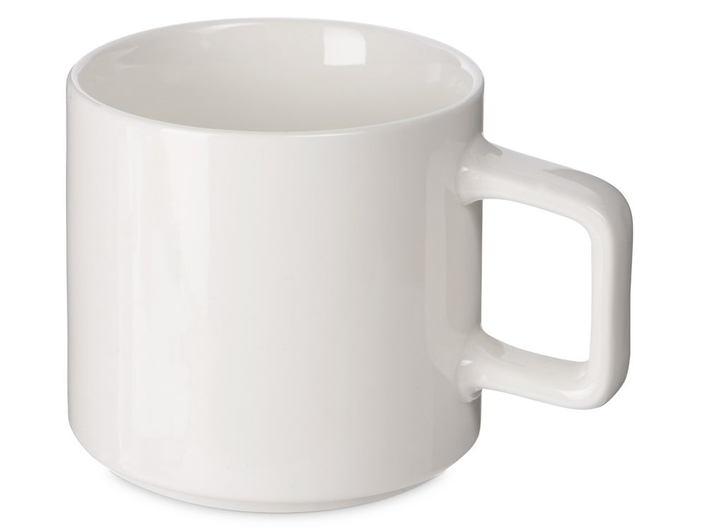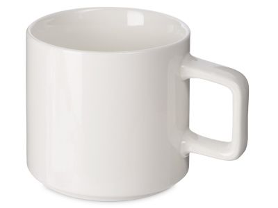 Белая кружка из костяного фарфора с удобной квадратной ручкой — широкой, комфортной для хвата и необычной формы. Форма дна позволяет ставить кружки друг на друга для экономии места: зацепленные друг за друга, выступом донышка, они не соскользнут друг с друга, выстроенные в ровную башню.