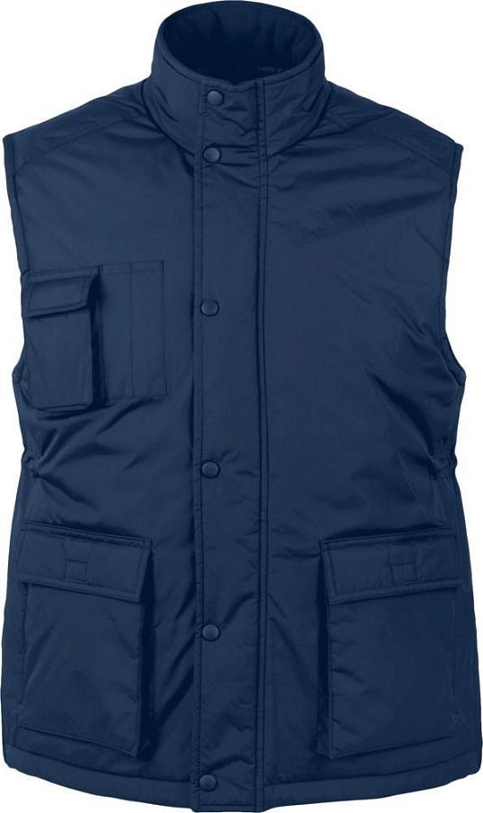 Жилет унисекс из ткани «рипстоп». Высокий воротник на кнопках, на подкладке из флиса. Расстегивается при помощи молнии и кнопок.