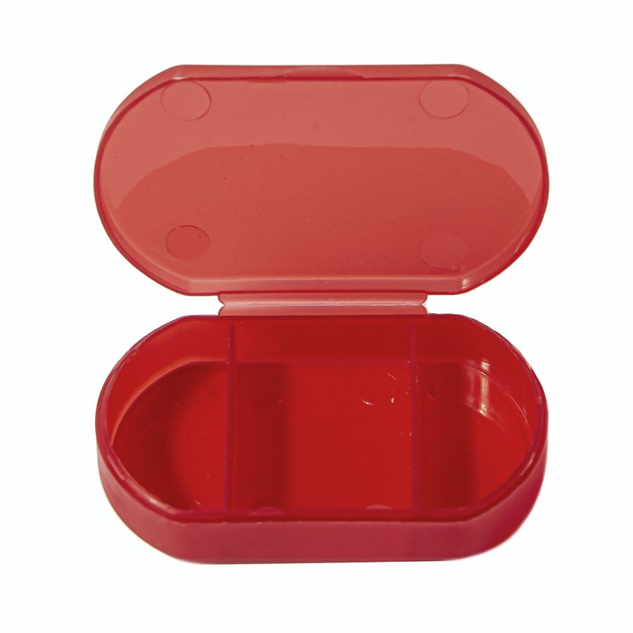 Компактный контейнер для таблеток, витаминов или конфетокПолупрозрачный корпус 3 отделенияРазмер изделия: 6 x 1.3 x 3.9 смВес: 6 гр.