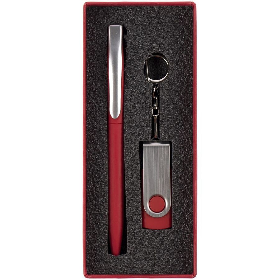 флешка - металл, пластик, покрытие софт-тач; ручка - пластик, покрытие софт-тач; коробка - переплетный картон