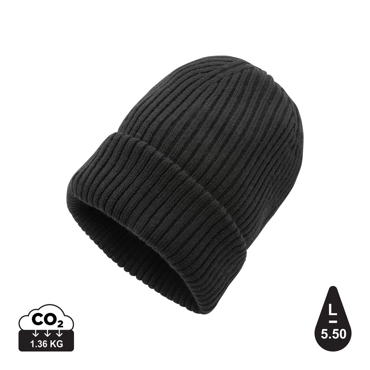 Теплая двухслойная шапка Impact с отворотом идеально подойдет как женщинам, так и мужчинам. Модель выполнена из инновационного материала Polylana®. Polylana® — экологичный аналог акриловой пряжи, при создании которого тратится меньше энергии и воды. Материал содержит индикатор AWARE™, наличие которого подтверждает все заявленные свойства. При производстве каждой шапки Impact мы сэкономили 5,5 л воды. 2% с продаж каждого изделия будут перечислены в поддержку всемирной благотворительной организации Water.org.Универсальный размер. Состав: 30% переработанный полиэстер, 30% полиэстер, 40% акрил.