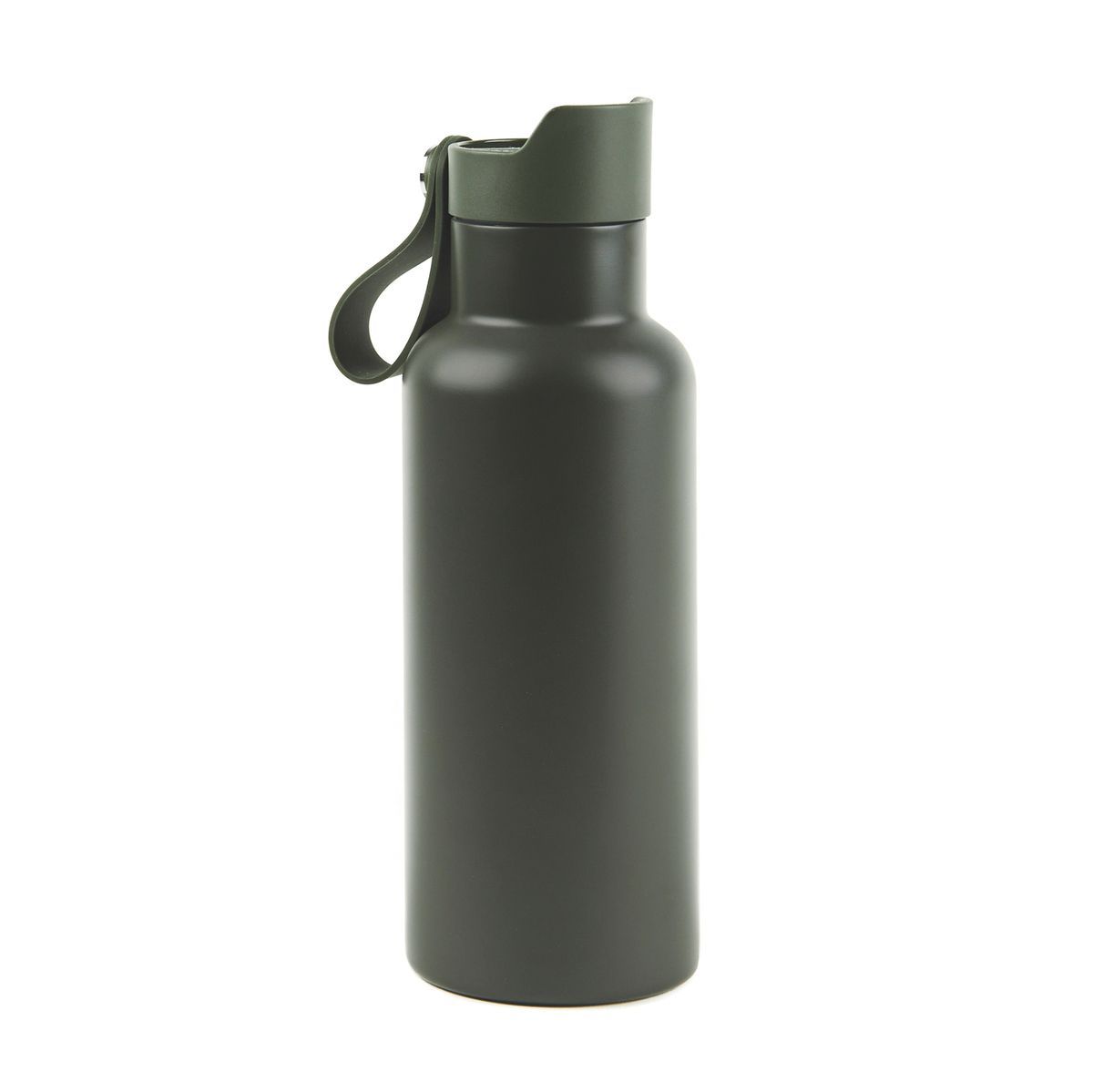 Комфорта добавляет и ремешок в тон: за него можно подвесить бутылку к рюкзаку, ремню или носить в руках, не опасаясь ее выронить.
