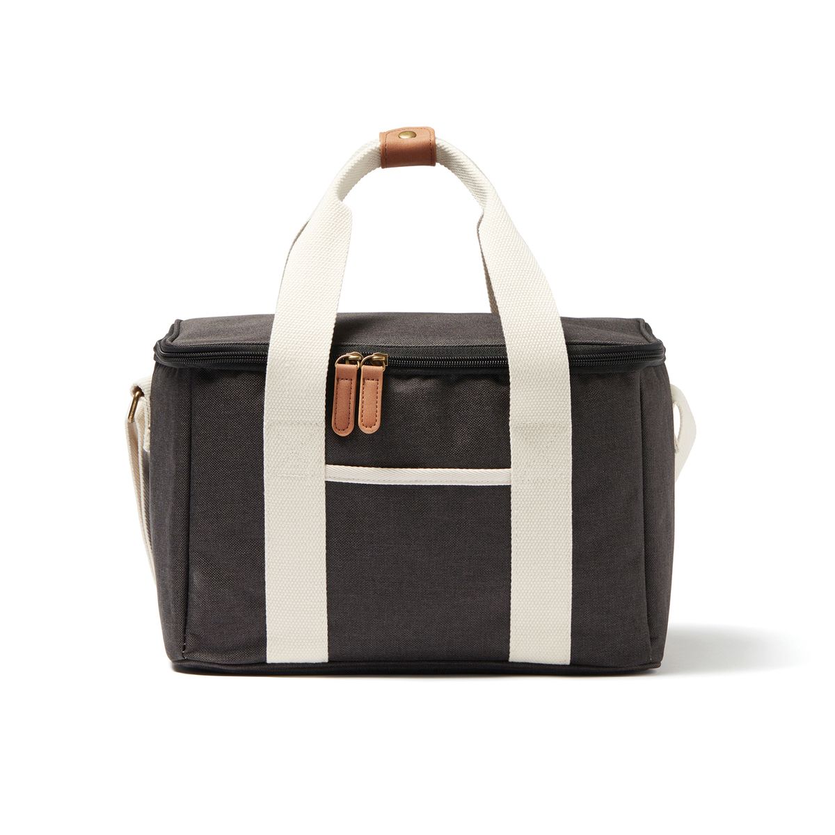 Это универсальная сумка-холодильник с контрастными деталями на 50% изготовлена из rPET, переработанных пластиковых бутылок. Снаружи есть небольшое отделение для важных мелочей. Благодаря плотному подкладу из PEVA сумка легко моется и долго сохраняет холод. Есть регулируемый плечевой ремень и короткие ручки.