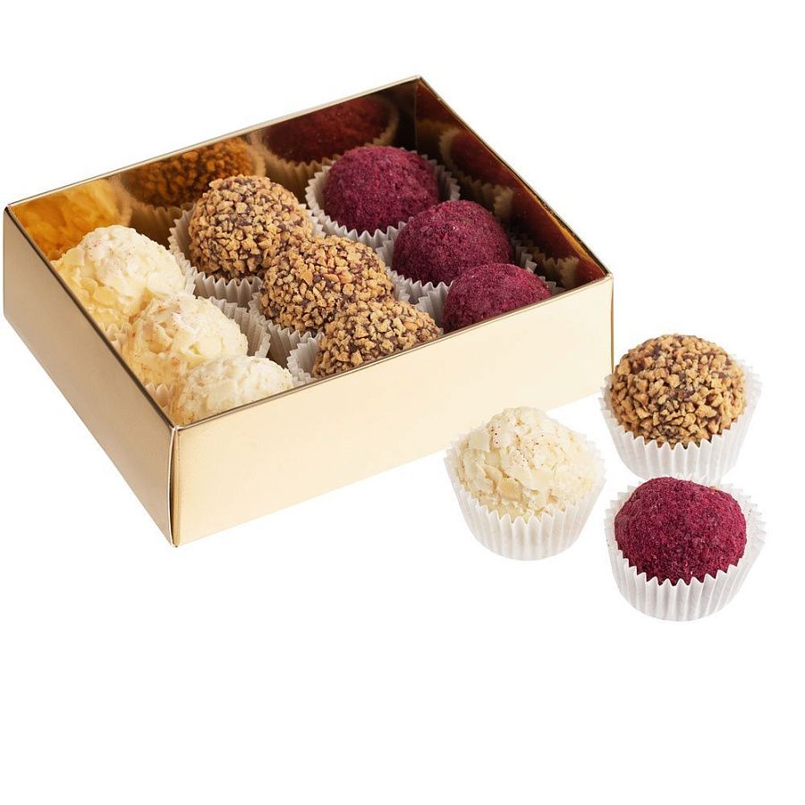 Трюфельные конфеты Dulceneo — это изысканное воплощение бельгийских традиций производства шоколада, благородный и эстетичный подарок. 3 утонченных вкуса с добавлением молочного или белого шоколада, а также аппетитных и ароматных натуральных ингредиентов подарят истинное наслаждение. Это беспроигрышный вариант, когда нужно деликатно оказать знак внимания, выразить благодарность и восхищение.В наборе конфеты 3 разных вкусов: