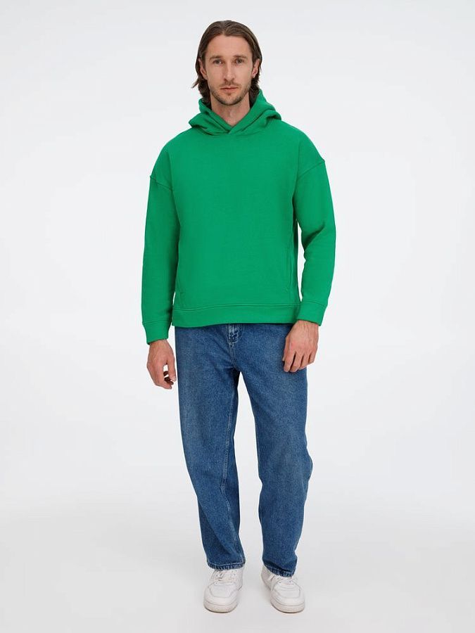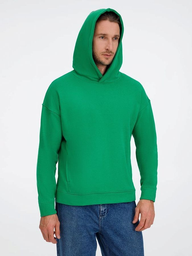 Худи унисекс оверсайз со спущенным плечом и внутренним карманом-кенгуру.