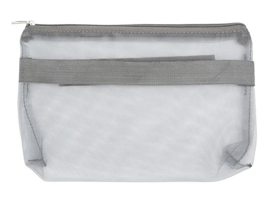 Органайзер состоит из карманов на молнии, карманов-сеток, прозрачного моющегося кармана на молнии, в который можно поместить флаконы с жидкостью — даже если емкость разгерметизируется, карман легко очистить под струей воды.