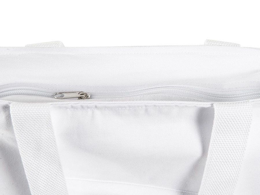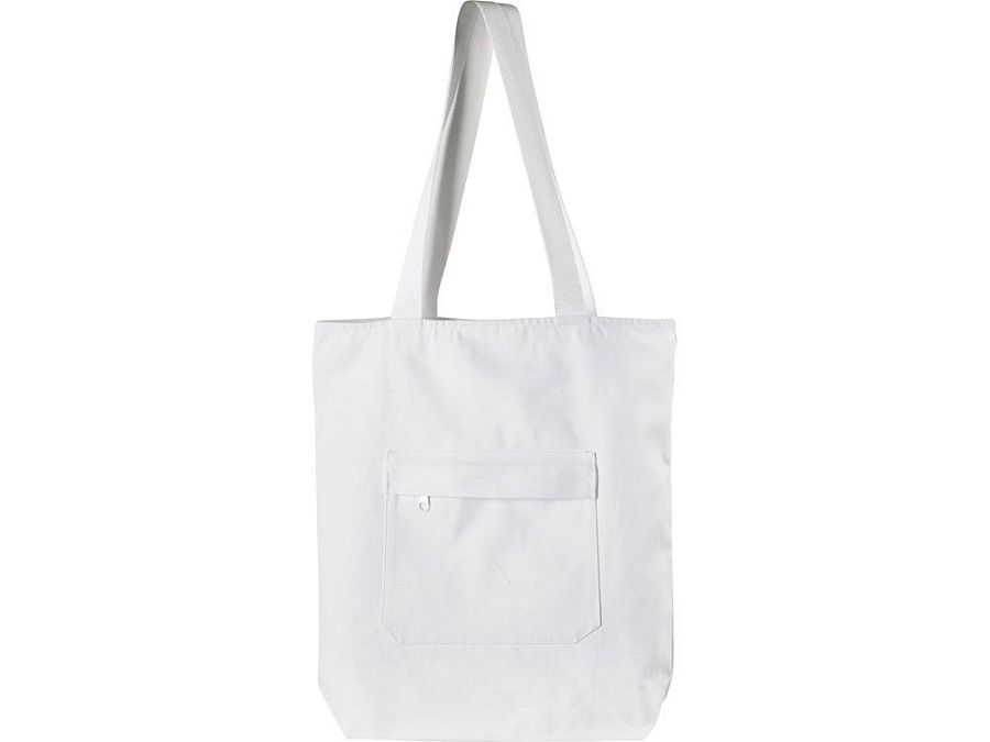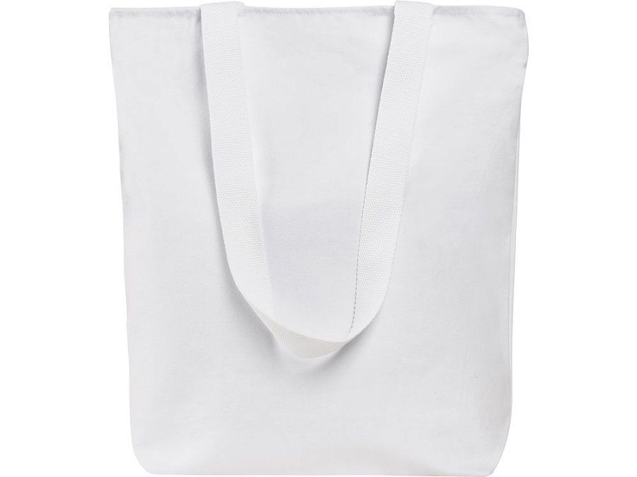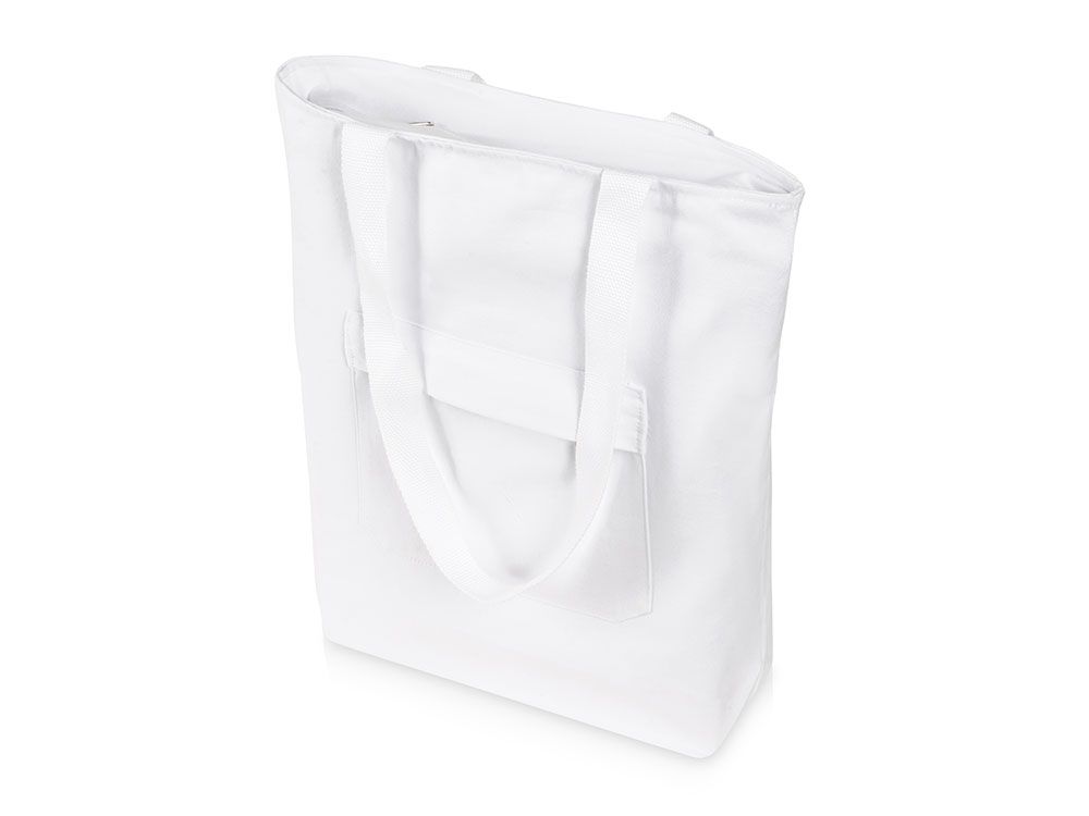 Преимущество этой сумки в наличии застежки молнии на основном отделении - ее содержимое остается закрытым. Донная складка увеличивает вместимость. Снаружи расположен карман на молнии. Парусиновые ручки в тон сумки.