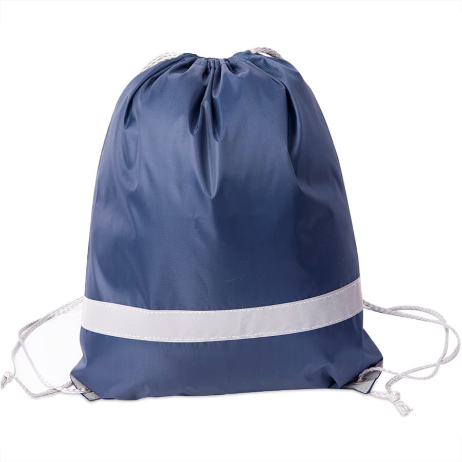 Просто и безопасно! Рюкзак-мешок RAY из полиэстера 210Dсо светоотражающей полосой спереди, светоотражающими уголками,усиленными металлическими люверсамиЛегко и просто затягивается по верхней части серыми шнурами.Тёмно-синий цвет близкий к Pantone 289C