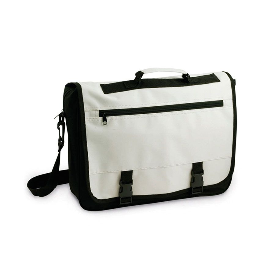 Сумка для документов из полиэстера 600D с клапаном на липучке и элегантной черной передней полосой. С усиленными ручками для переноски и регулируемым плечевым ремнем. Внутренние карманы для ручек и чехол для смартфона из ПВХ с тактильной функцией.