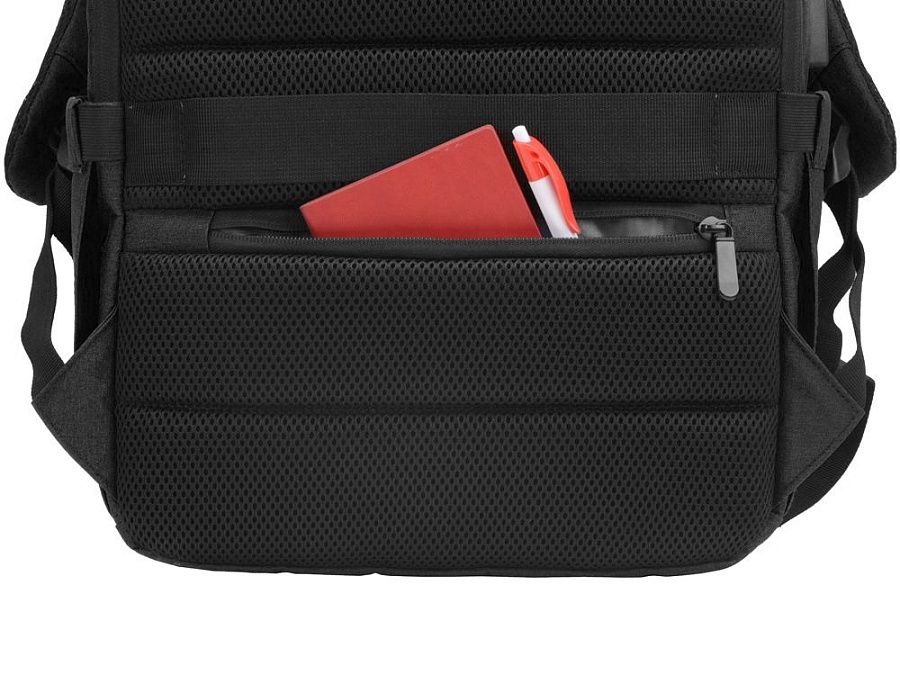 -затрудненный несанкционированный доступ к отделению для ноутбука и планшета благодаря тому, что молния смещена к спинке
