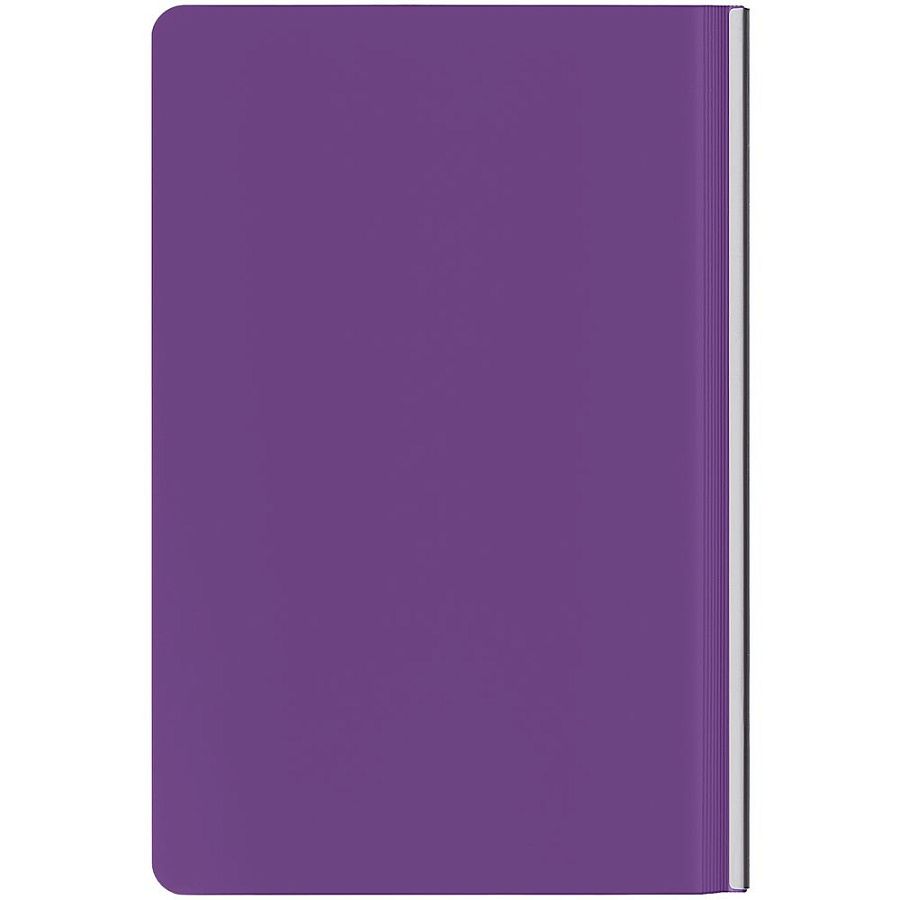 Ежедневник с гибкой обложкой и металлическим корешком, выполнен из материала Soft Touch, фиолетовый UU, дополнен серебристым обрезом блока и ляссе.