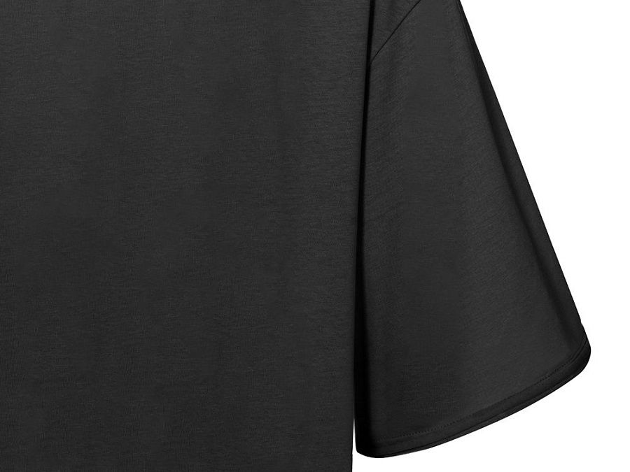 Материал — хлопковое джерси, плотность ткани средняя (150 гр/м2), что позволяет носить футболку в жаркие летние дни.