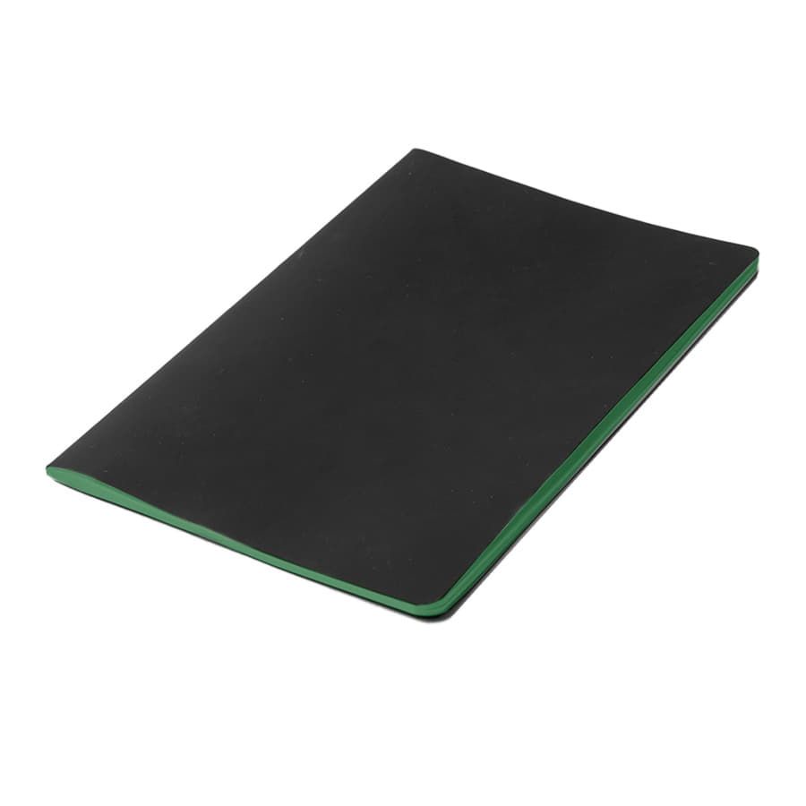 Цвет обложки черныйЦвет обреза близкий к PANTONE 341 Блок прошит, на корешке прошивка в цвет обрезаБлок с элементами планирования, в клеткуРазмер 140*210 мм, переплет мягкийОбложка PU Silk TouchСкругленные углыБумага кремовая, плотность 70г м2Форзац нахзац кремовые64 страницы