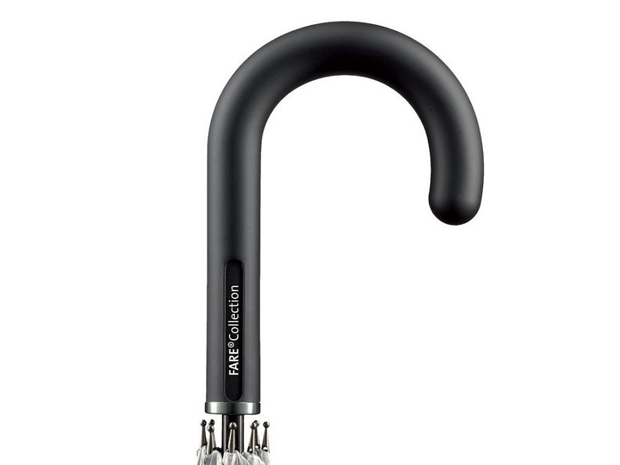 Двухцветный купол этого зонта-трости делает его ярким аксессуаром. Плавно открывается нажатием кнопки на ручке. Каркас из особо прочной гальванизированной стали.